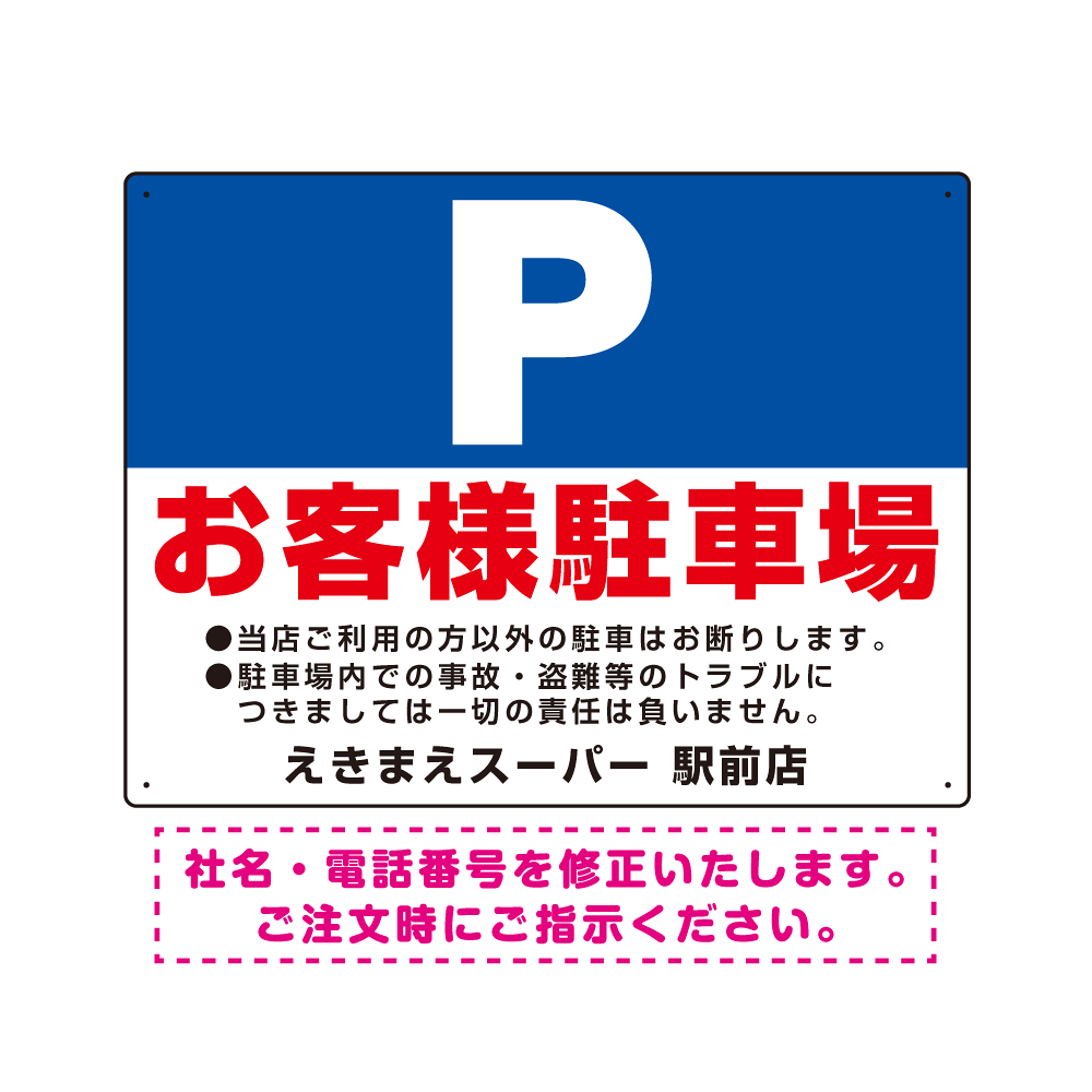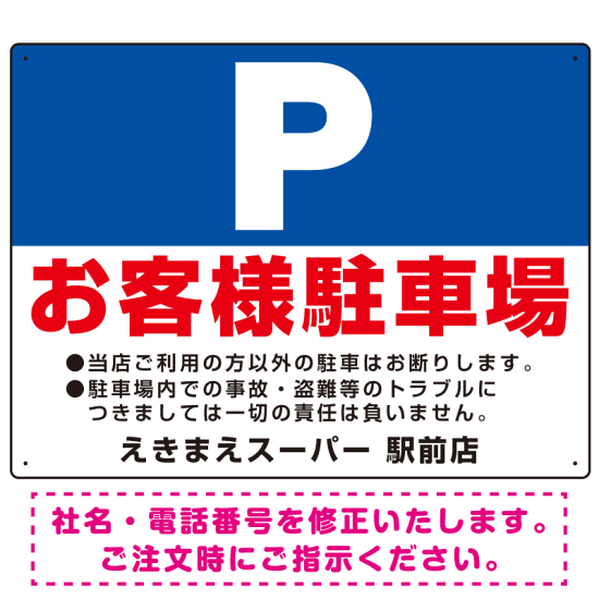 商品説明:大きなP「お客様駐車場」 デザインB オリジナル プレート看板 W600×H450 エコユニボード