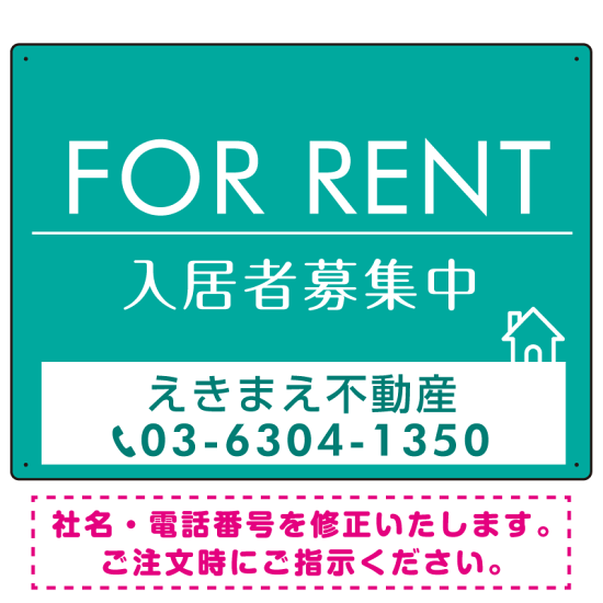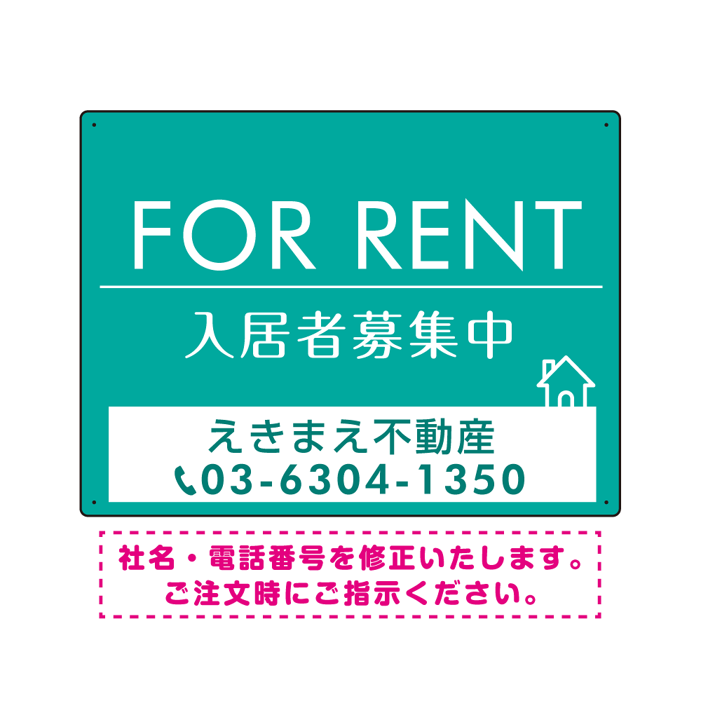 FOR RENT 入居者募集中 エメラルドグリーン デザインA オリジナル プレート看板 W600×H450 エコユニボード