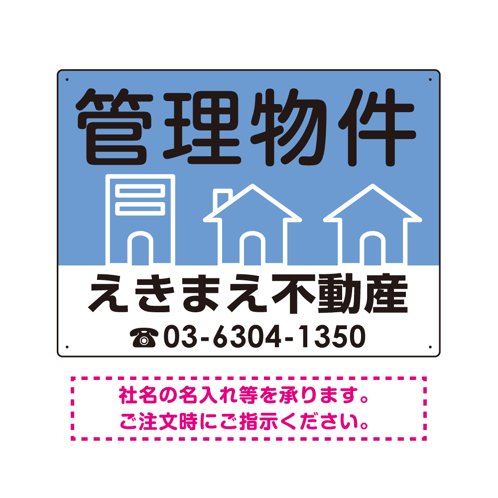 商品説明:管理物件 ブルー デザインC オリジナル プレート看板 W600×H450 エコユニボード