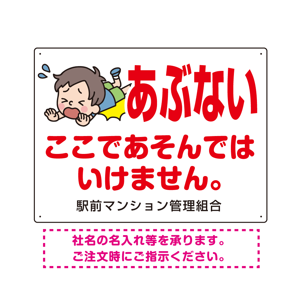 商品説明:あぶない ここであそんではいけません 子供イラストA プレート看板 W600×H450 エコユニボード