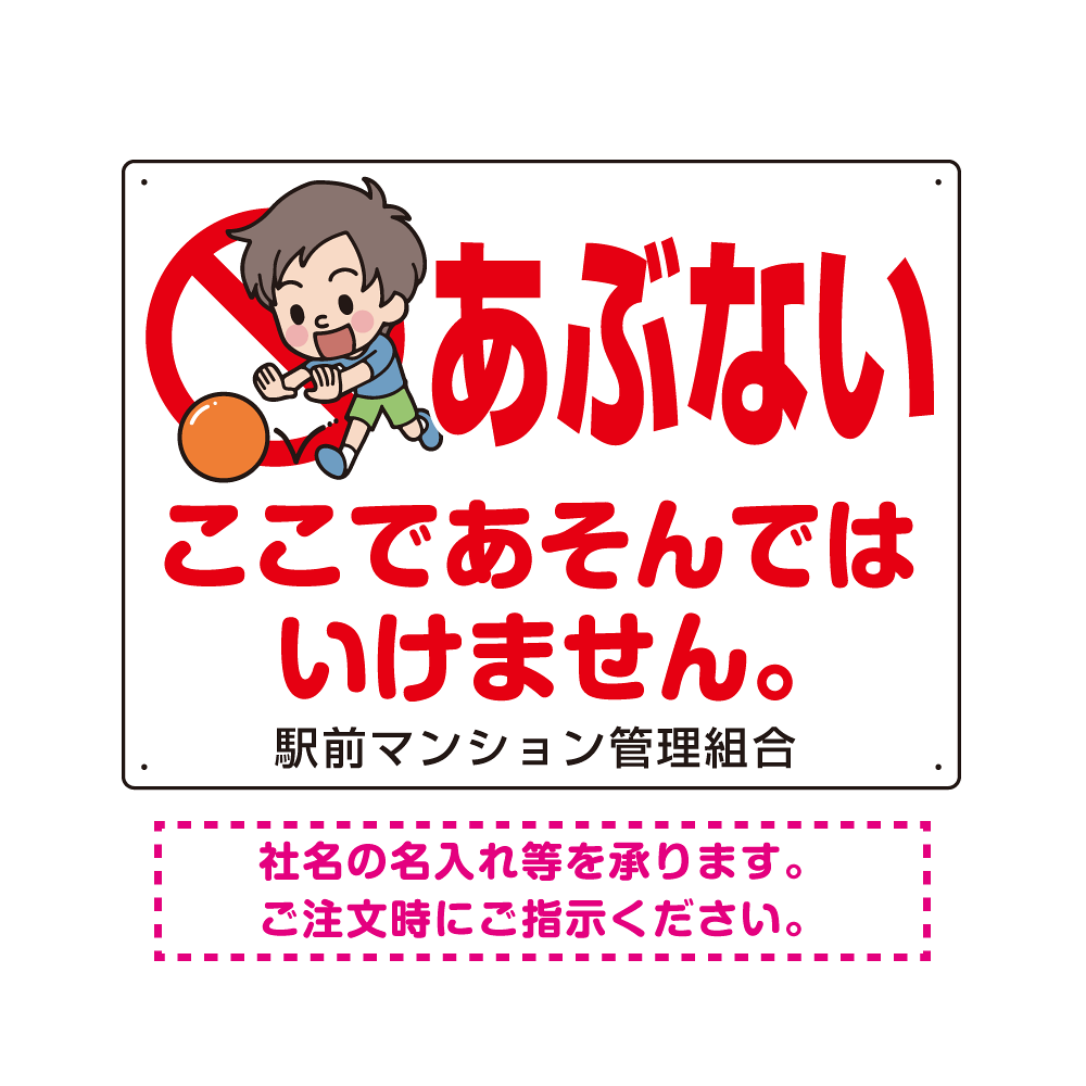 あぶない ここであそんではいけません 子供イラストB プレート看板 W600×H450 エコユニボード