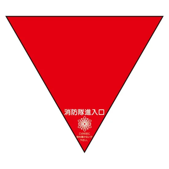 - 消防隊進入口の位置を示しながら、付近に物を置かないよう注意喚起できる反射タイプの表示です。