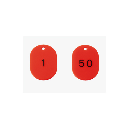 商品説明:番号札45×30 50枚組 1~50 赤 (877-611)