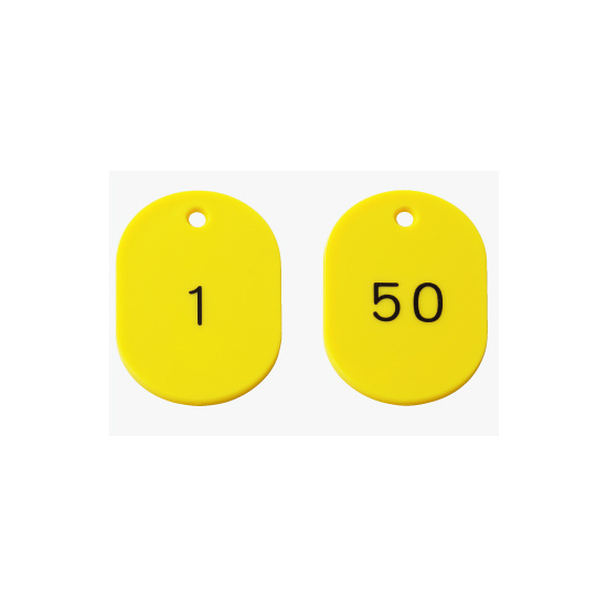 商品説明:番号札60×40 50枚組 1~50 黄 (877-618)
