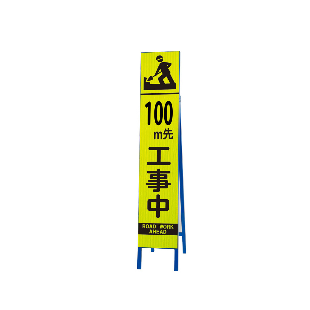 商品説明:高輝度スリム反射看板蛍光黄 片面表示 100M先工事中 (396-11)