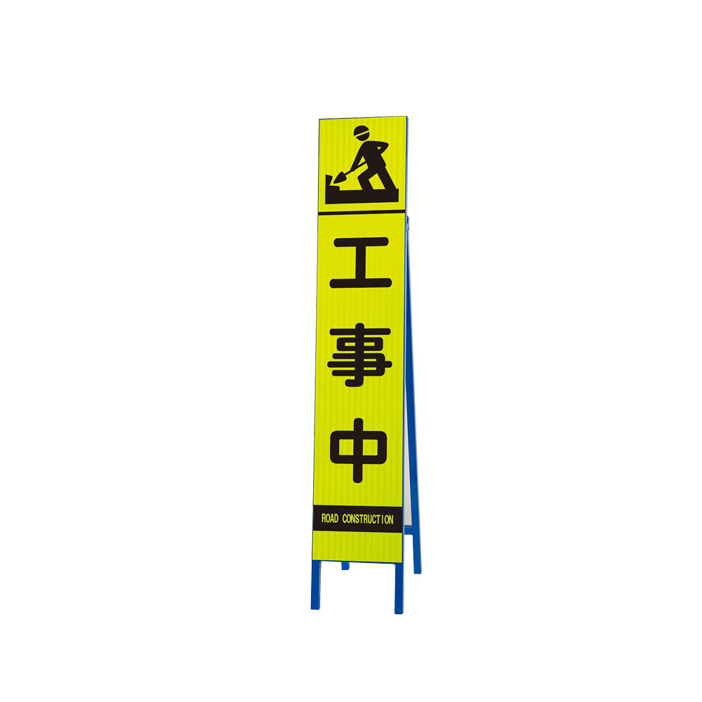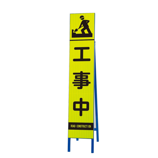 商品説明:高輝度スリム反射看板蛍光黄 片面表示 工事中 (396-14)