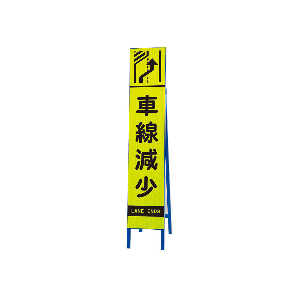 商品説明:高輝度スリム反射看板蛍光黄 片面表示 車線減少 左 (396-17)