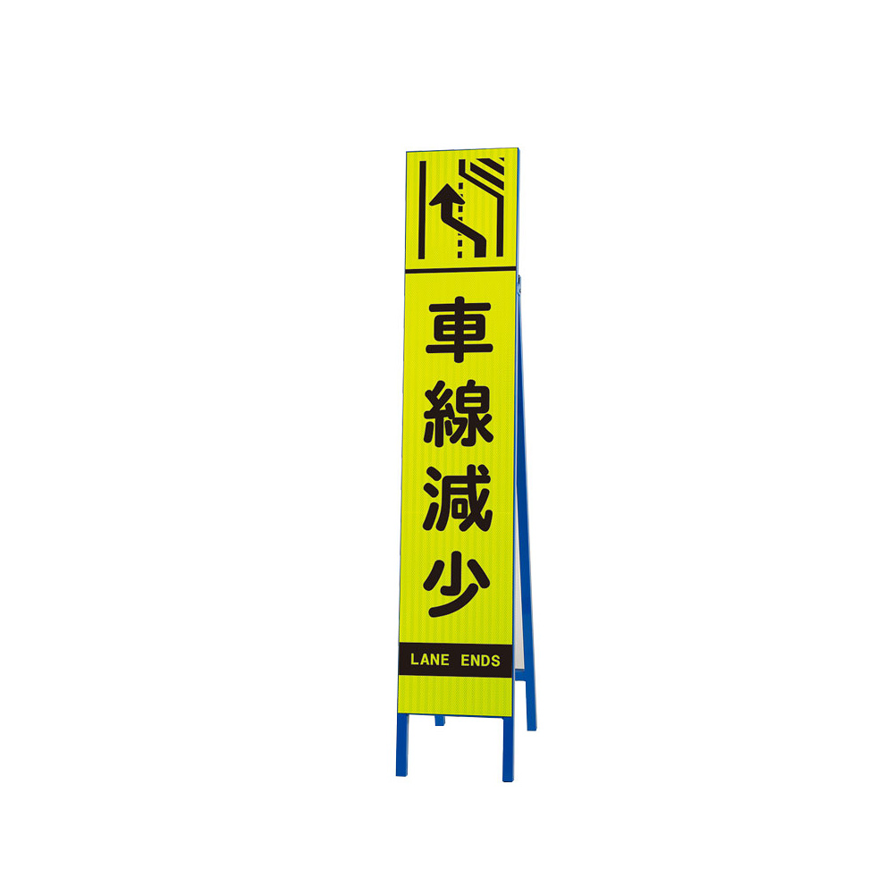 商品説明:高輝度スリム反射看板蛍光黄 片面表示 車線減少 右 (396-18)