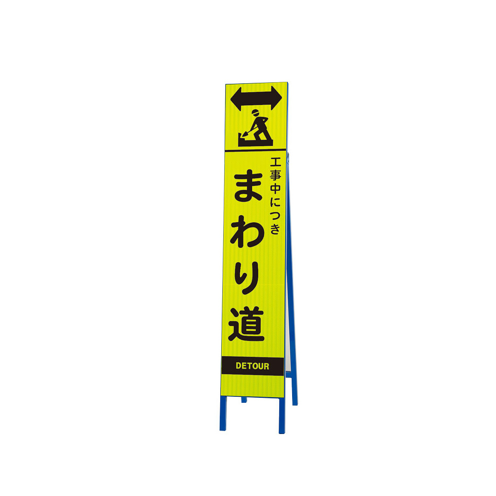 商品説明:高輝度スリム反射看板蛍光黄 片面表示 工事中 まわり道 (396-26)