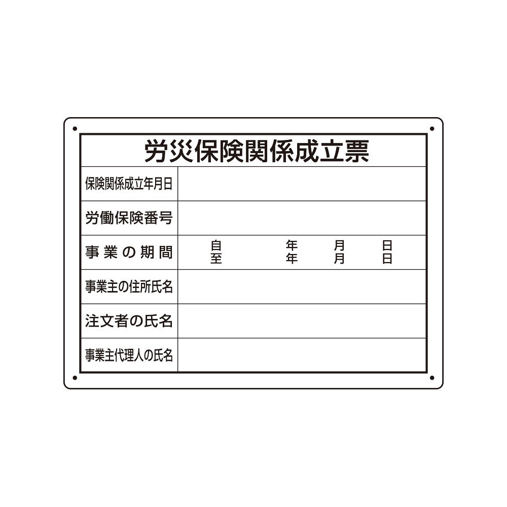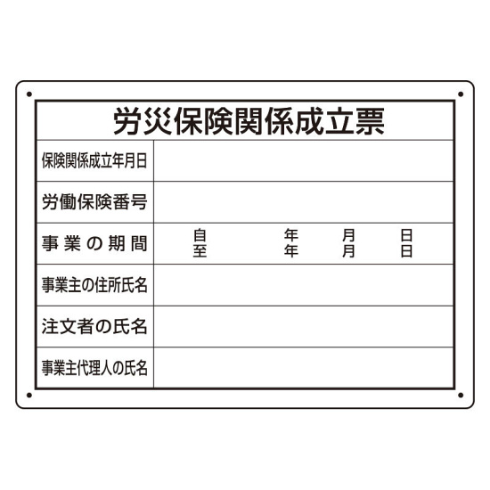 商品説明:労災保険関係成立票 様式第二十五号 エコユニボード(302-072)