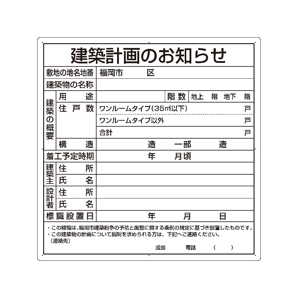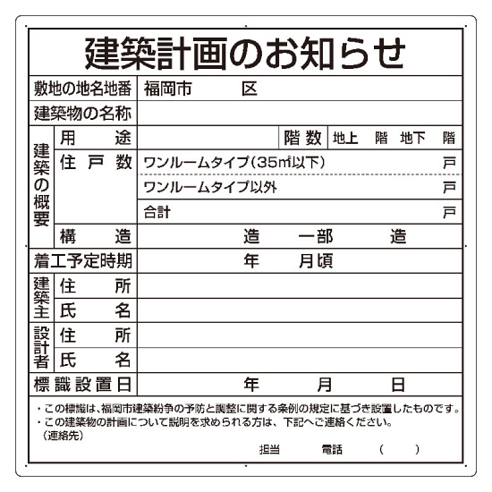 商品説明:建築計画のお知らせ エコユニボード 福岡市型 (302-21F)