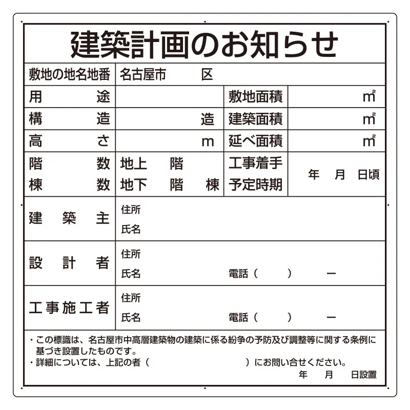 建築計画のお知らせ エコユニボード 名古屋市型 (302-21N) の商品詳細