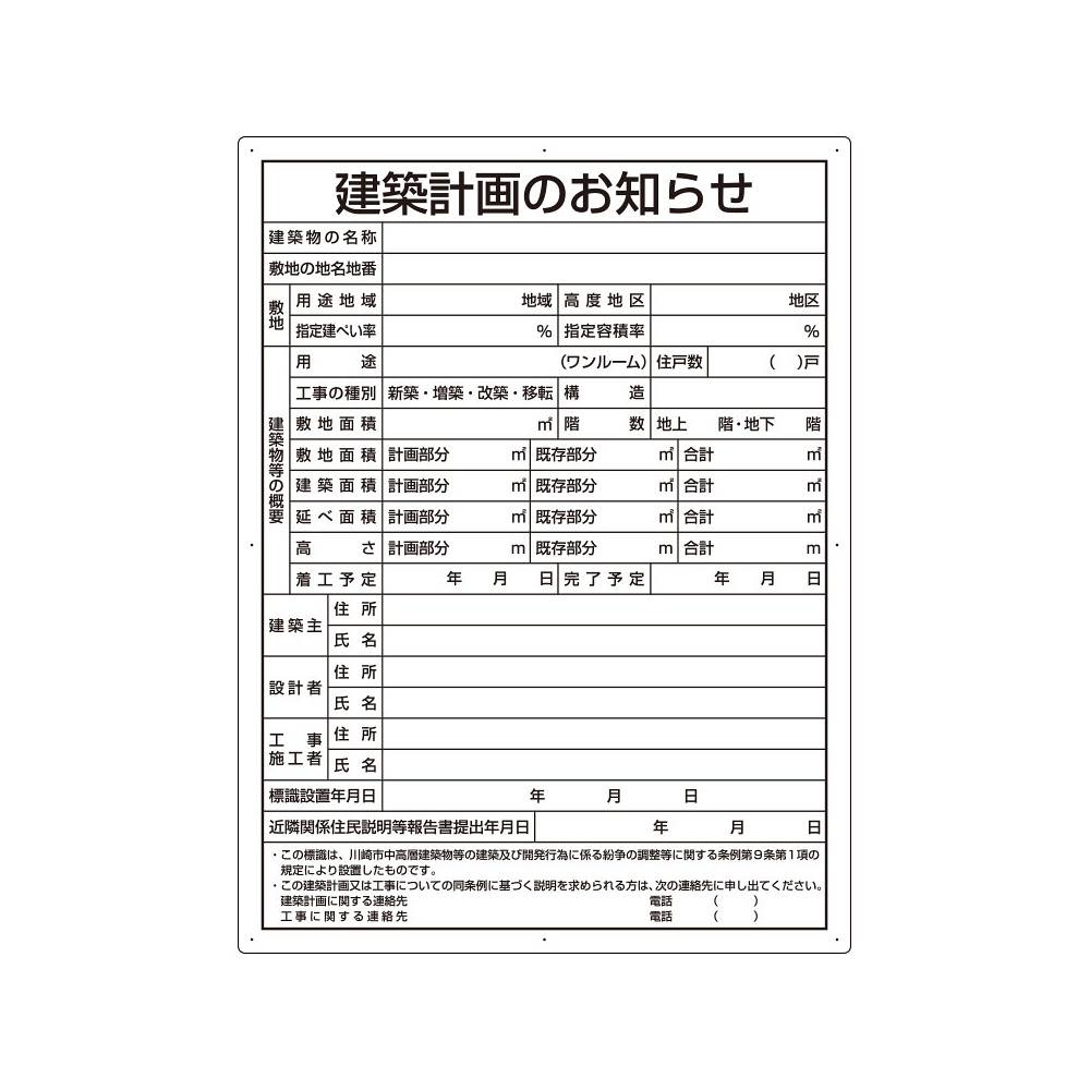建築計画のお知らせ アルミ複合板製 川崎市型 (302-26KW)