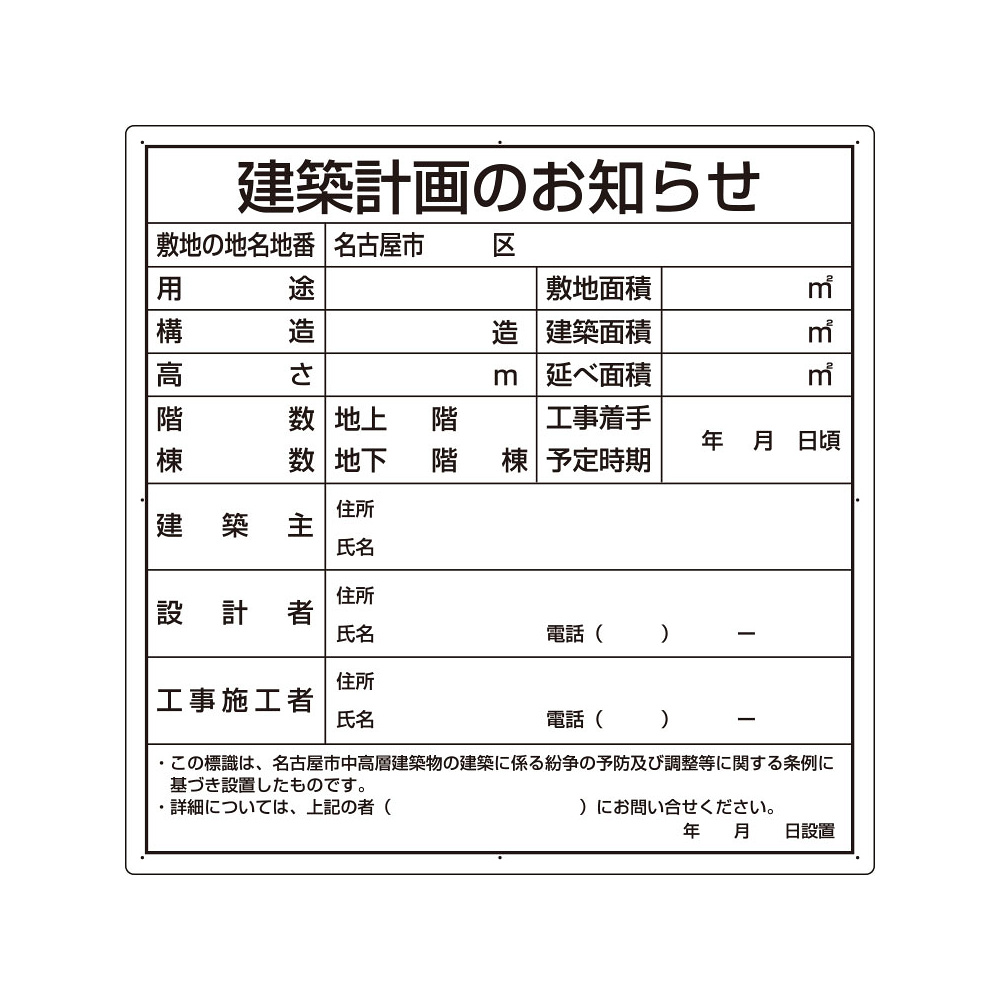 商品説明:建築計画のお知らせ アルミ複合板製 名古屋市型 (302-26N)