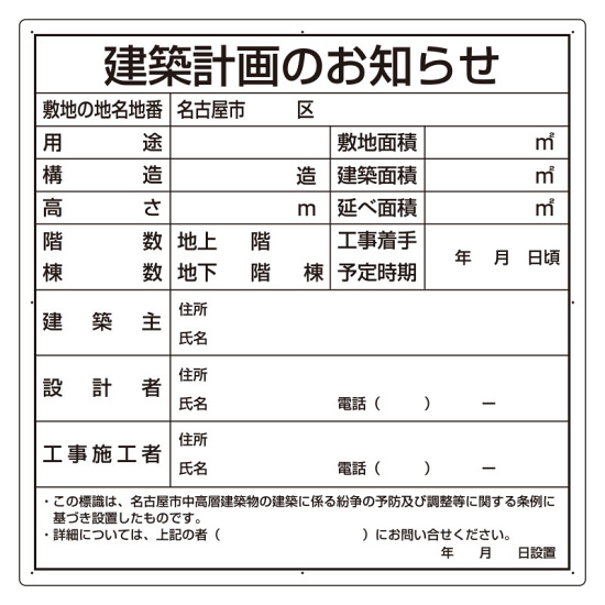 建築計画のお知らせ アルミ複合板製 名古屋市型 (302-26N)
