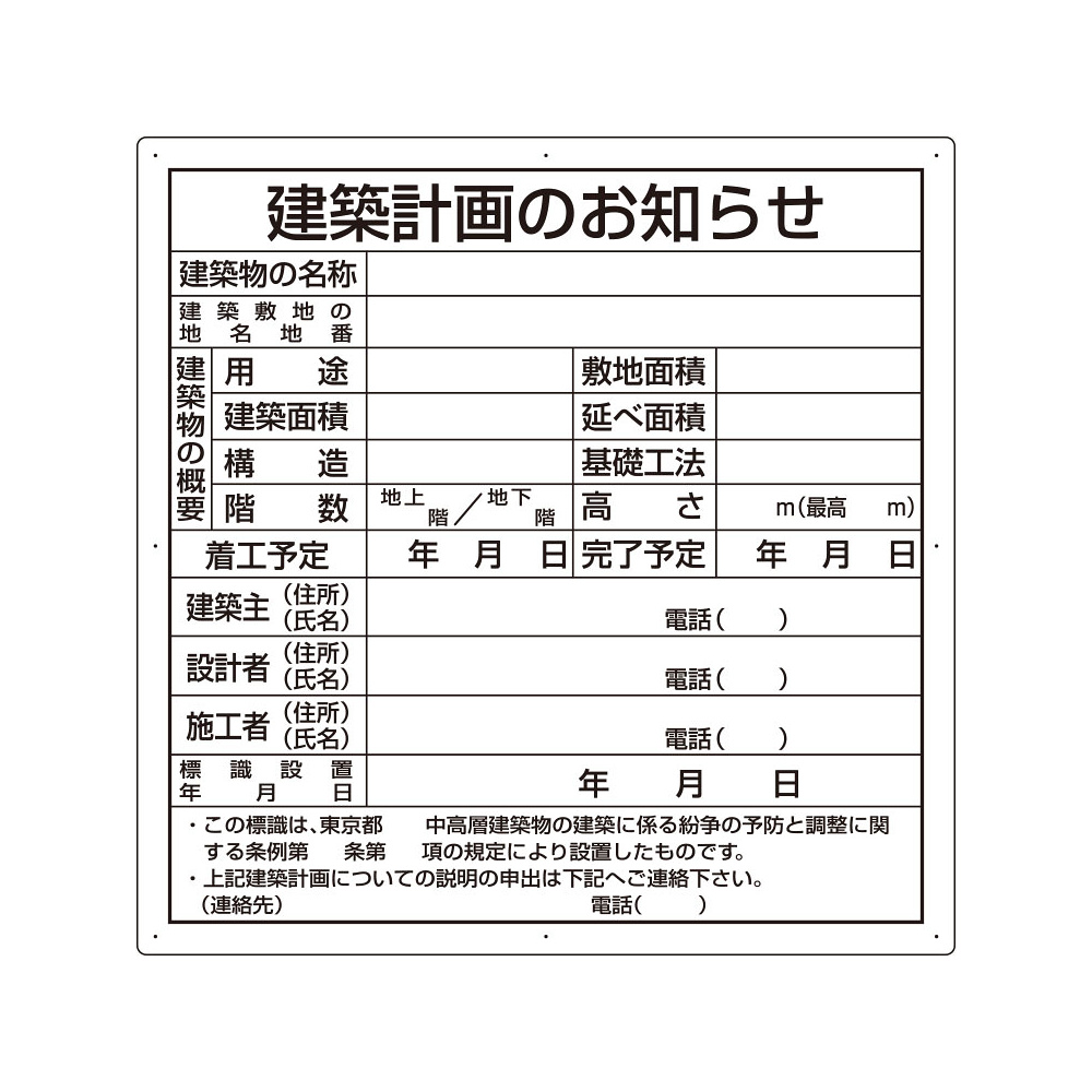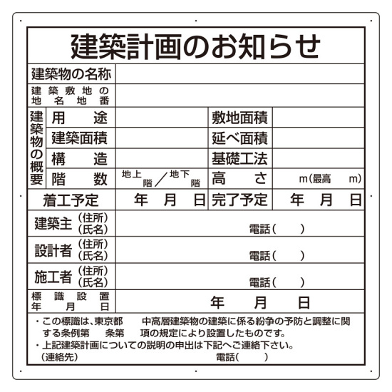 商品説明:建築計画のお知らせ アルミ複合板製 東京都型 (302-26T)