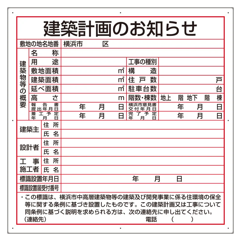 建築計画のお知らせ アルミ複合板製 横浜市型 (302-26Y)