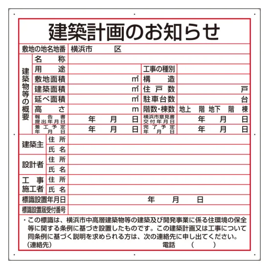 建築計画のお知らせ アルミ複合板製 横浜市型 (302-26Y) の商品詳細