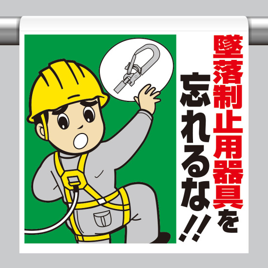 商品説明:ワンタッチ取付標識 墜落制止用器具を忘れるな!!