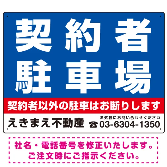 - 契約者駐車場 デザインA オリジナル プレート看板 W600×H450 アルミ複合板