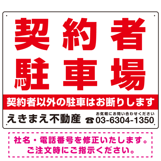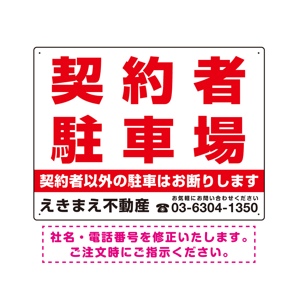 商品説明:契約者駐車場 赤文字 デザインB オリジナル プレート看板 W600×H450 アルミ複合板