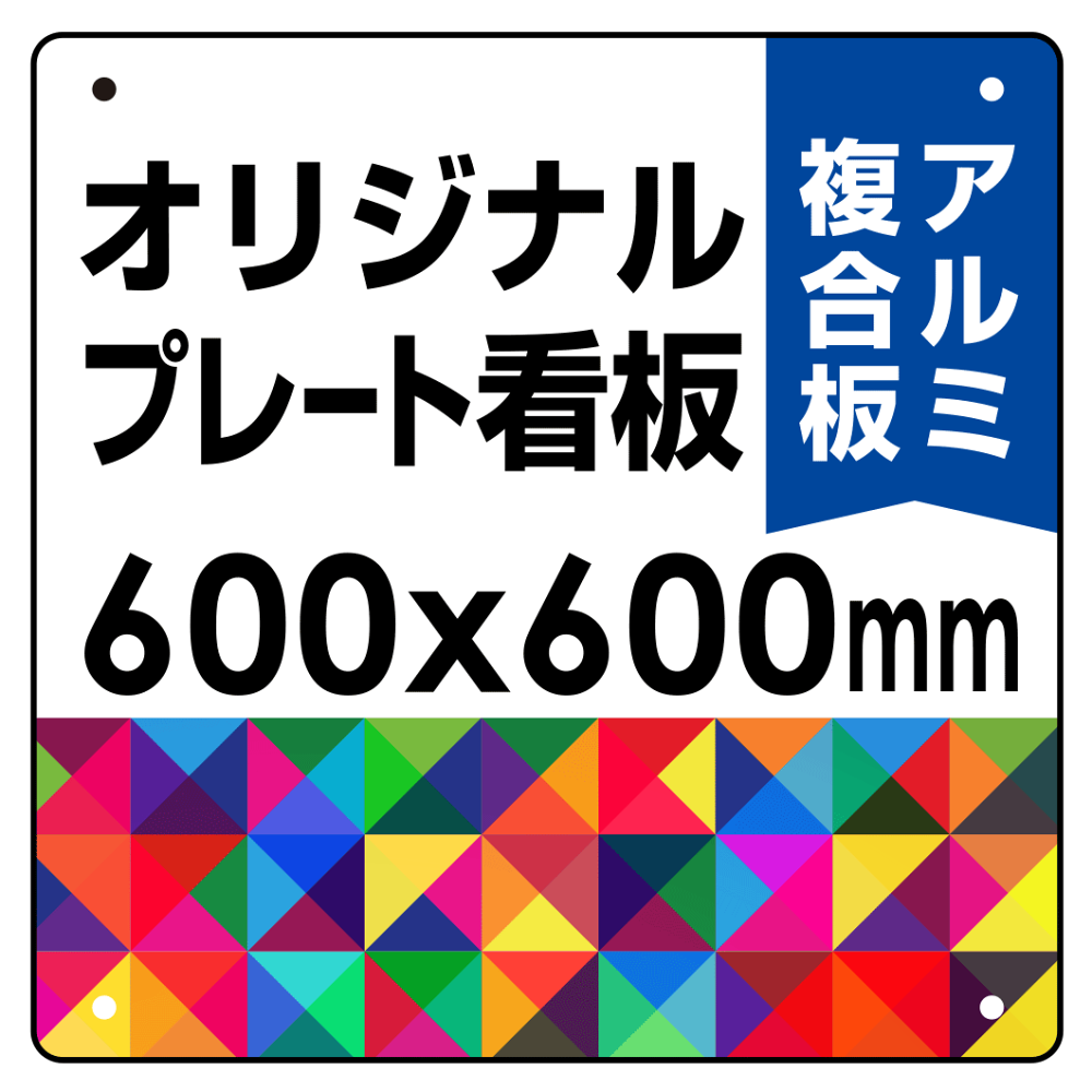 商品説明: オリジナルプレート看板 (印刷費込) 600×600 アルミ複合板 (角R・穴4)
