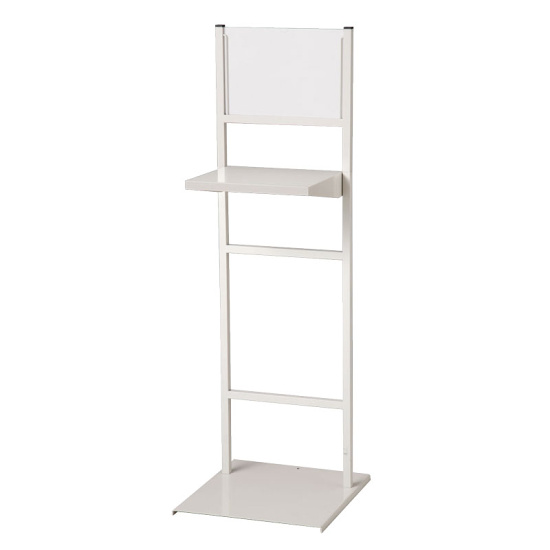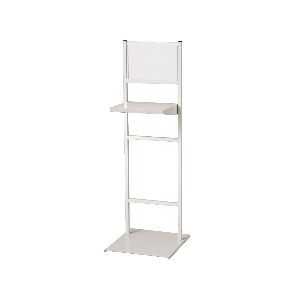 A4表示の差替も可能。消毒液やチラシ等が置ける便利なスタンドです。