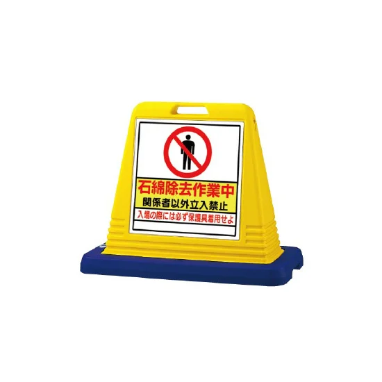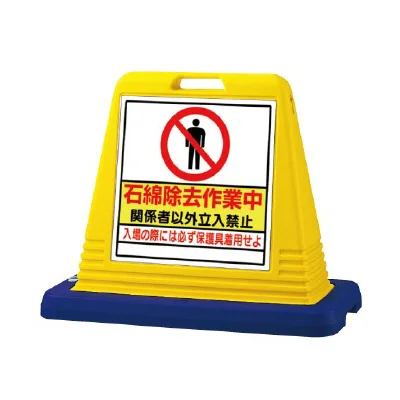 よくある質問:サインキューブ 石綿除去作業中 イエロー 片面表示 (874-161A)