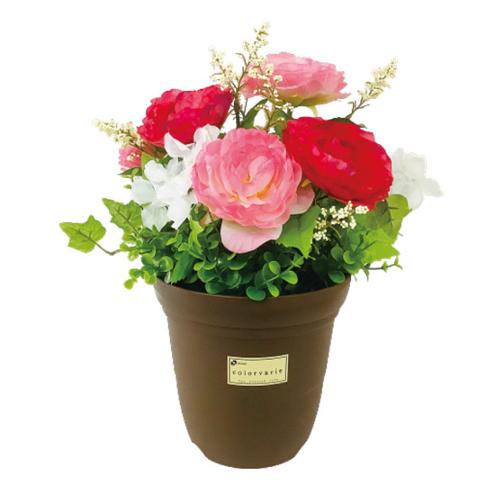 商品説明:造花鉢 ラナンキュラスピンク (935-44)