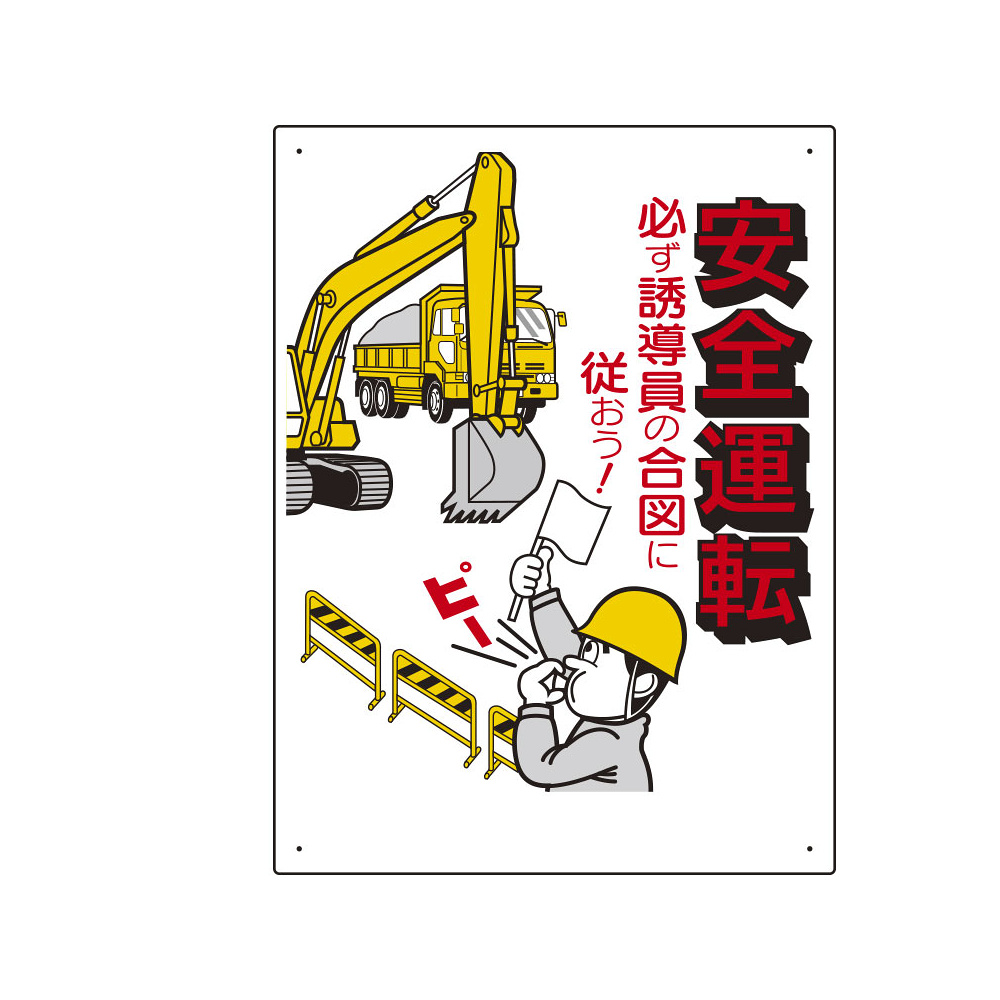 商品説明:交通安全標識 安全運転 必ず誘導員の合図に従おう! (306-02A)