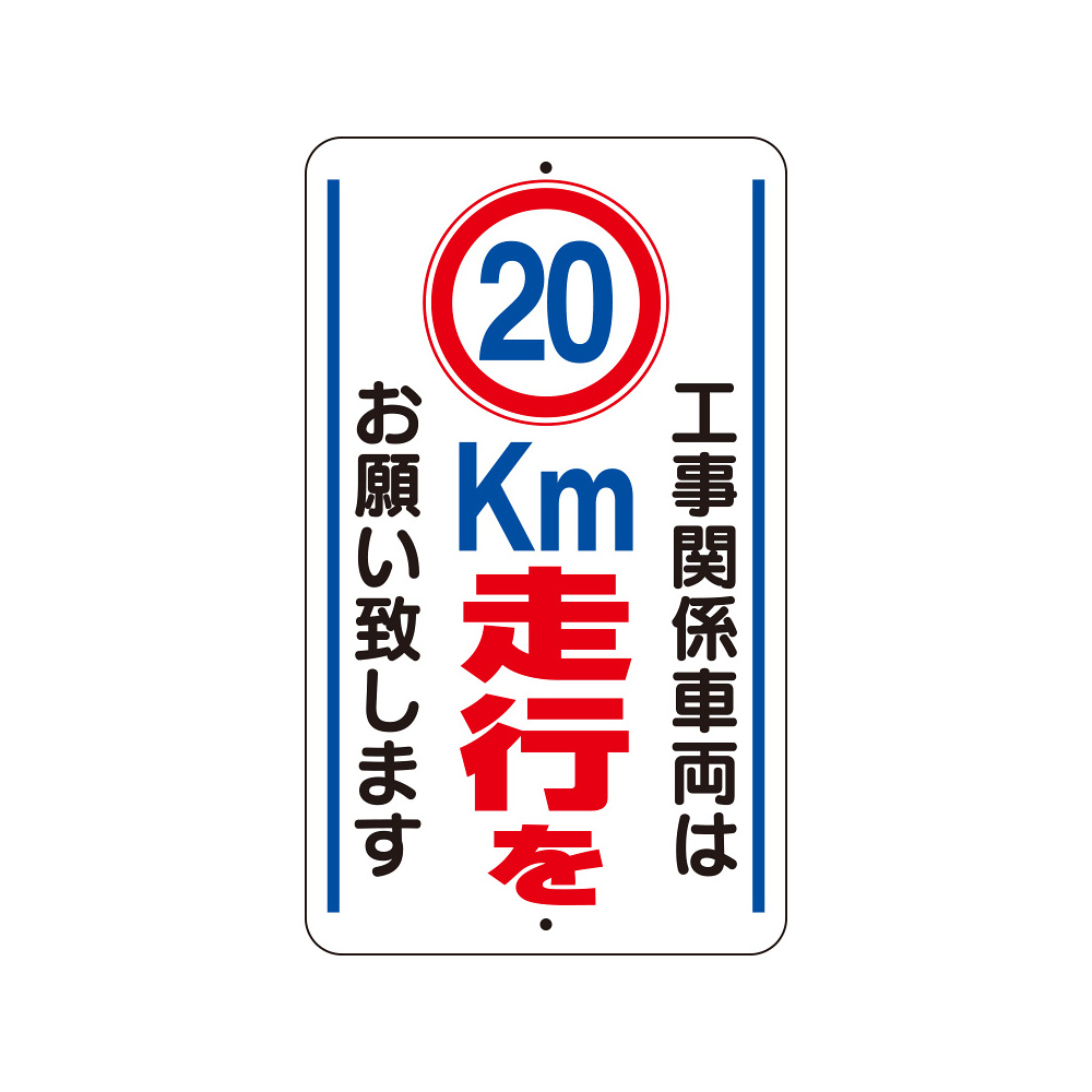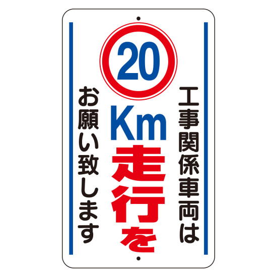商品説明:交通標識(構内標識) 工事関係車両は20km走行をお願いします (306-37)