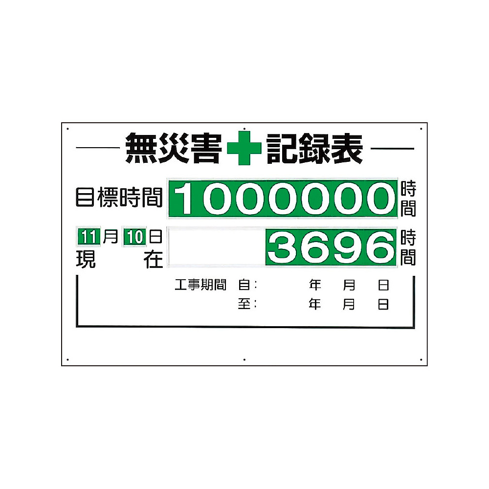 商品説明:無災害記録表(板・数字板セット) (315-01A)