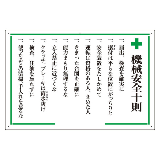 商品説明:機械安全十則表示板 (316-03)