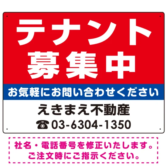 - テナント募集中 赤地・白文字 デザインA オリジナル プレート看板 W600×H450 エコユニボード