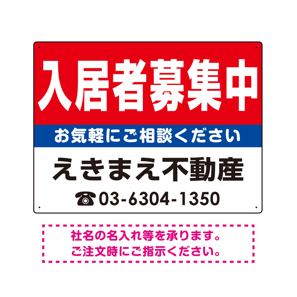 商品説明:入居者募集中 レッド デザインA オリジナル プレート看板 W600×H450 エコユニボード