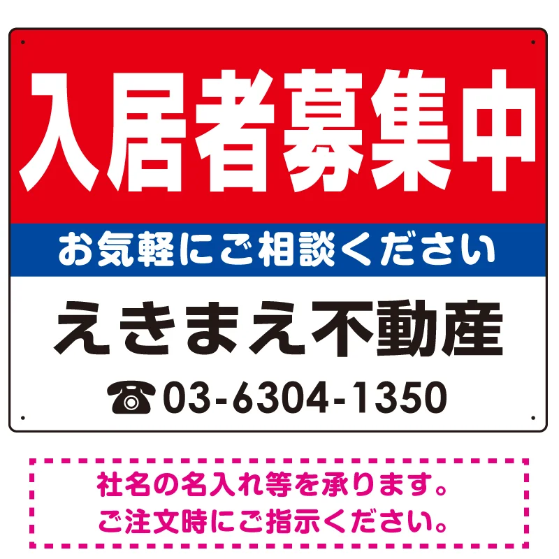 - 入居者募集中 レッド デザインA オリジナル プレート看板 W600×H450 エコユニボード