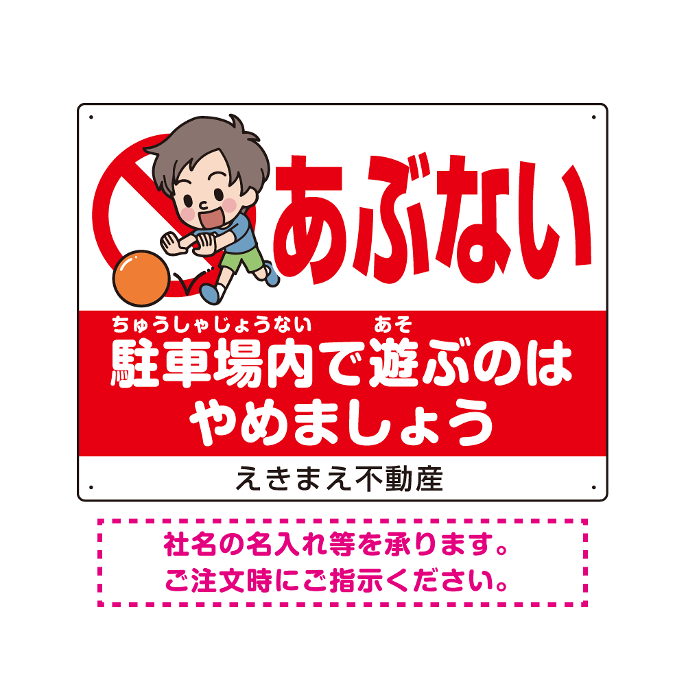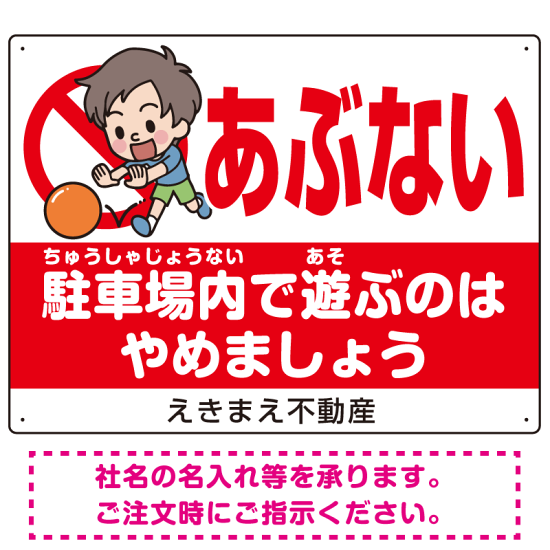 あぶない 駐車場内で遊ぶのはやめましょう デザインA オリジナル プレート看板 W600×H450 エコユニボード