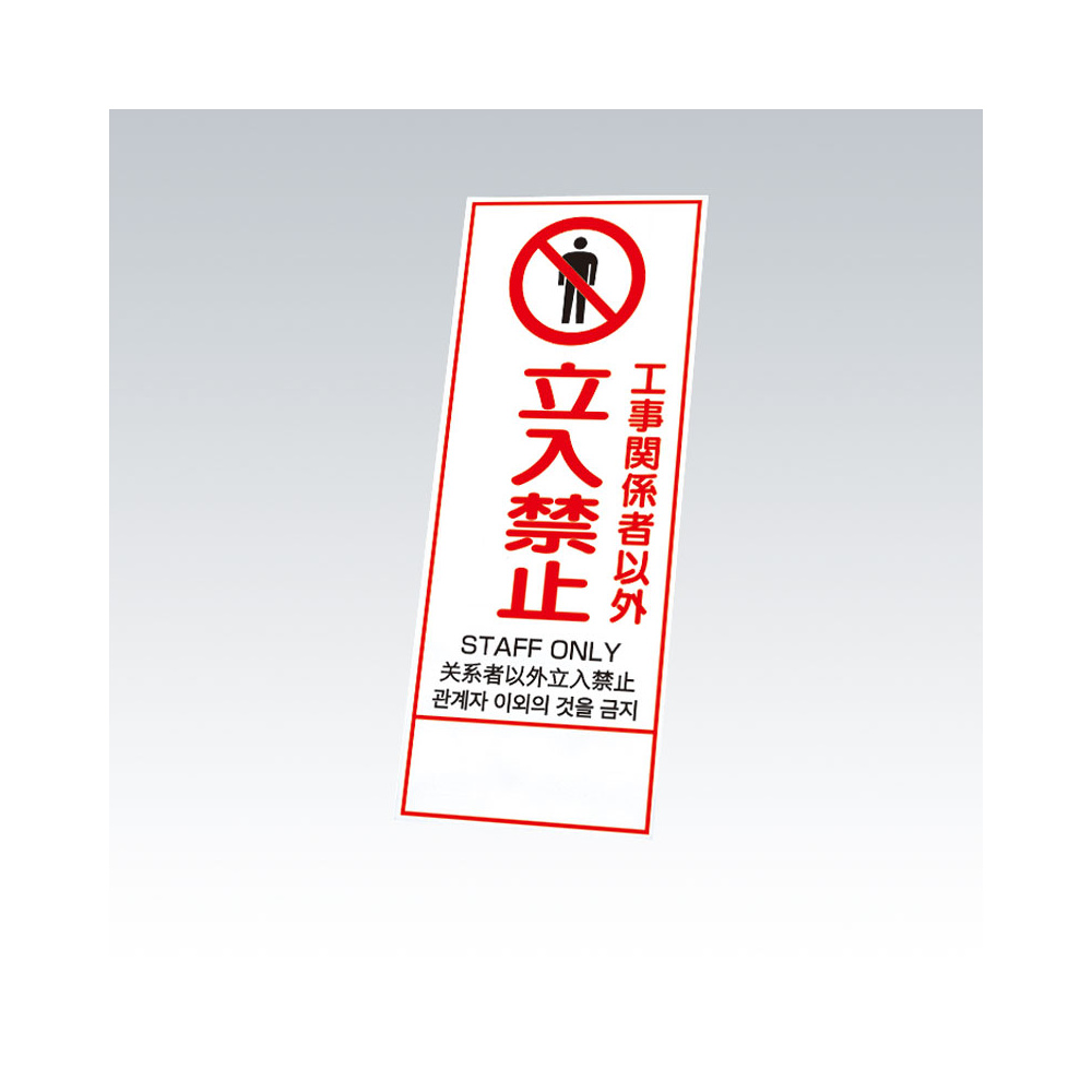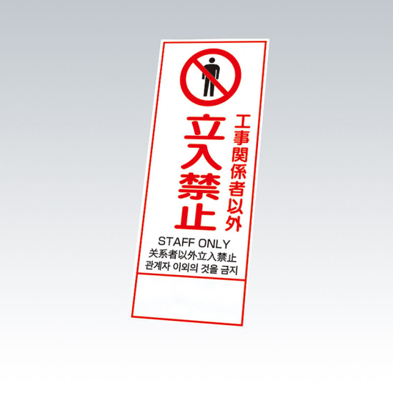 反射鉄枠看板(日英中韓4カ国語)396-60の板のみ 工事関係者以外立入禁止 (396-601)