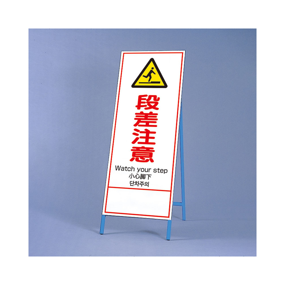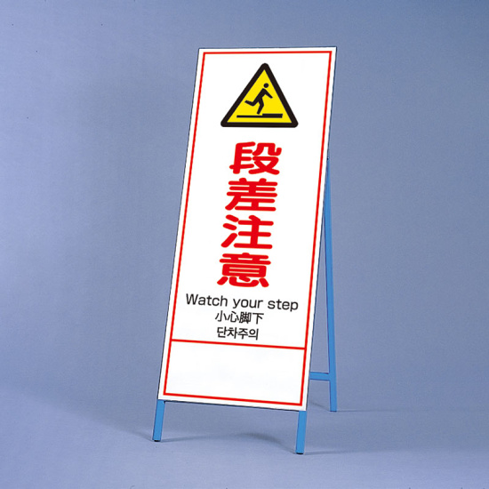 商品説明:反射鉄枠看板(日英中韓4カ国語) 段差注意 (396-63)
