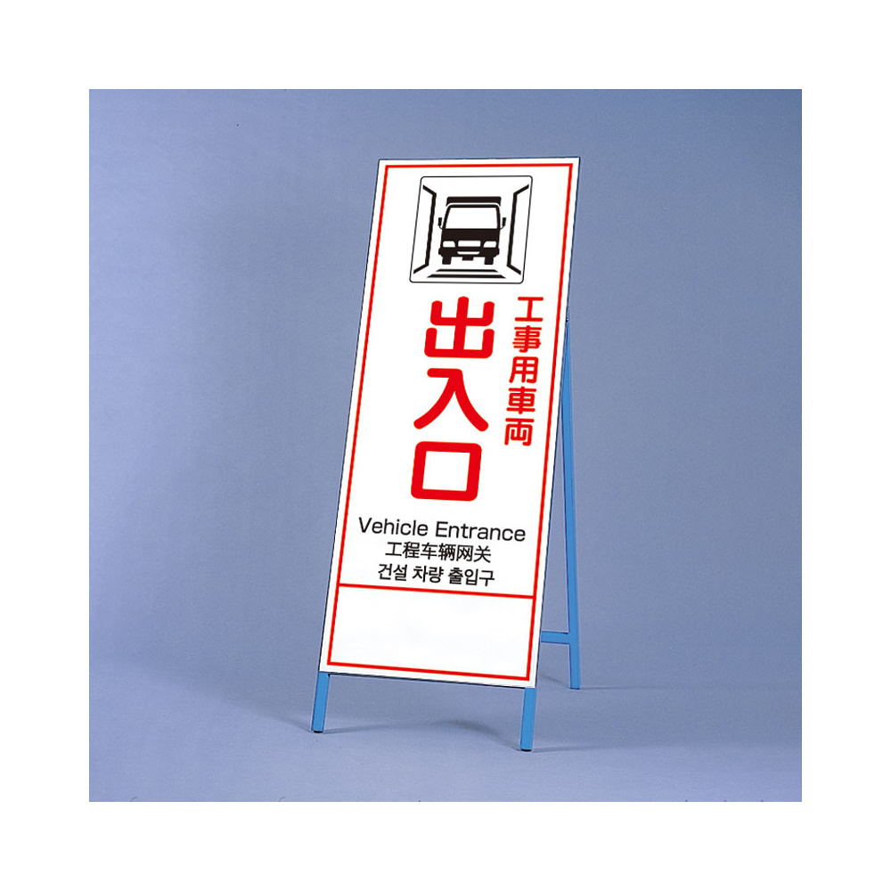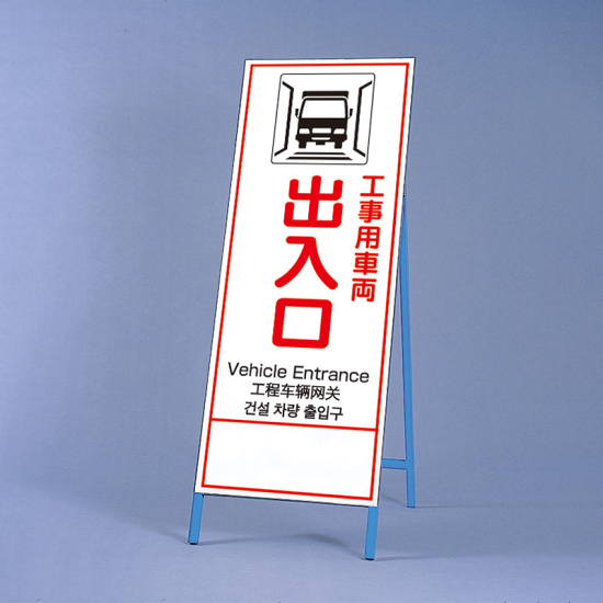 反射鉄枠看板(日英中韓4カ国語) 工事用車両出入口 (396-65)