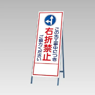 反射看板(枠付き) この先工事中につき右折禁止ご協力ください (394-34) の商品詳細