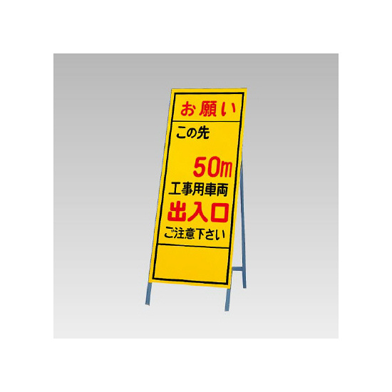 反射看板(枠付き) この先50m工事用車両出入口 (394-38)