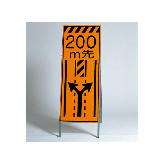 商品説明:高輝度反射標示板 200m先左右車線減少 (381-26)