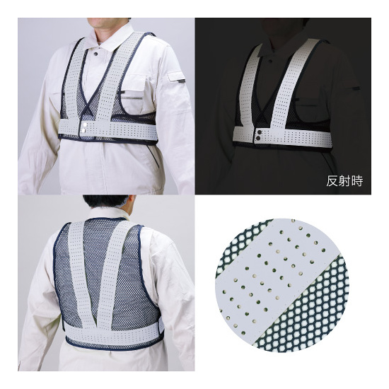 風抜けメッシュショートベスト 紺×白反射 (379-621)