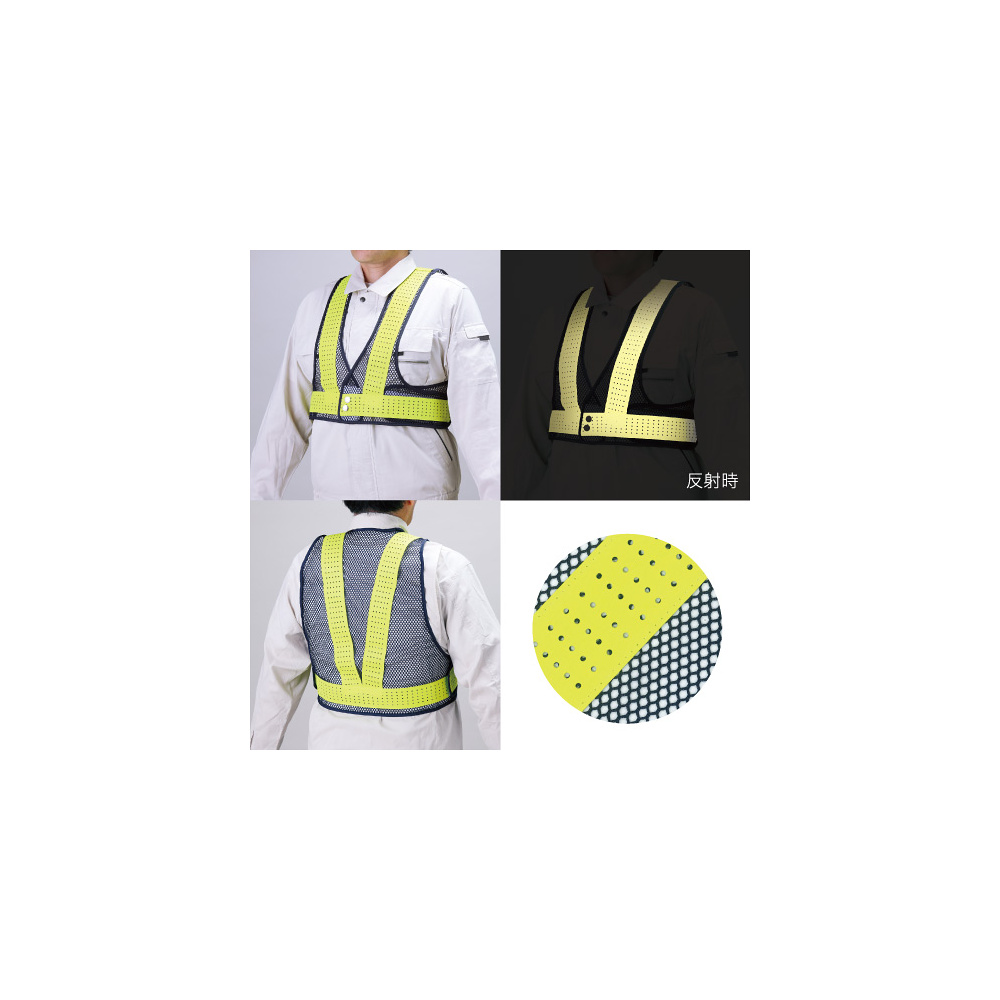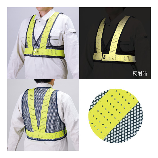 風抜けメッシュショートベスト 紺×黄反射 (379-622)