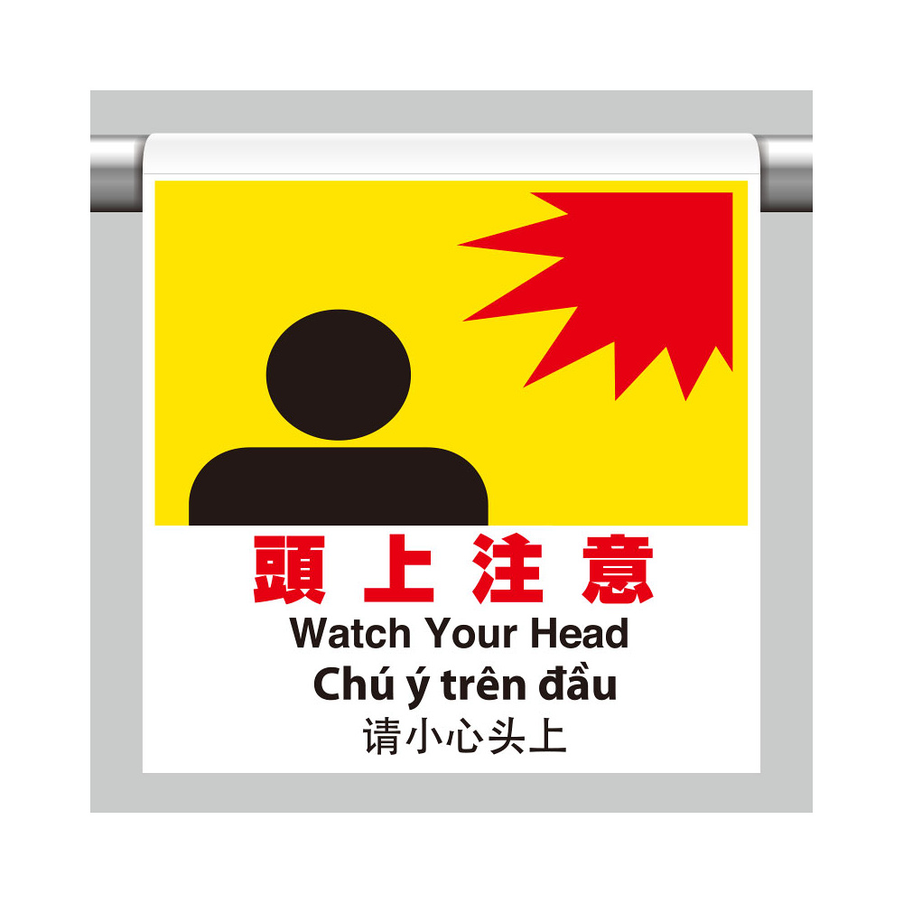 ワンタッチ取付標識(4カ国語・ピクトタイプ) 頭上注意 (355-75)