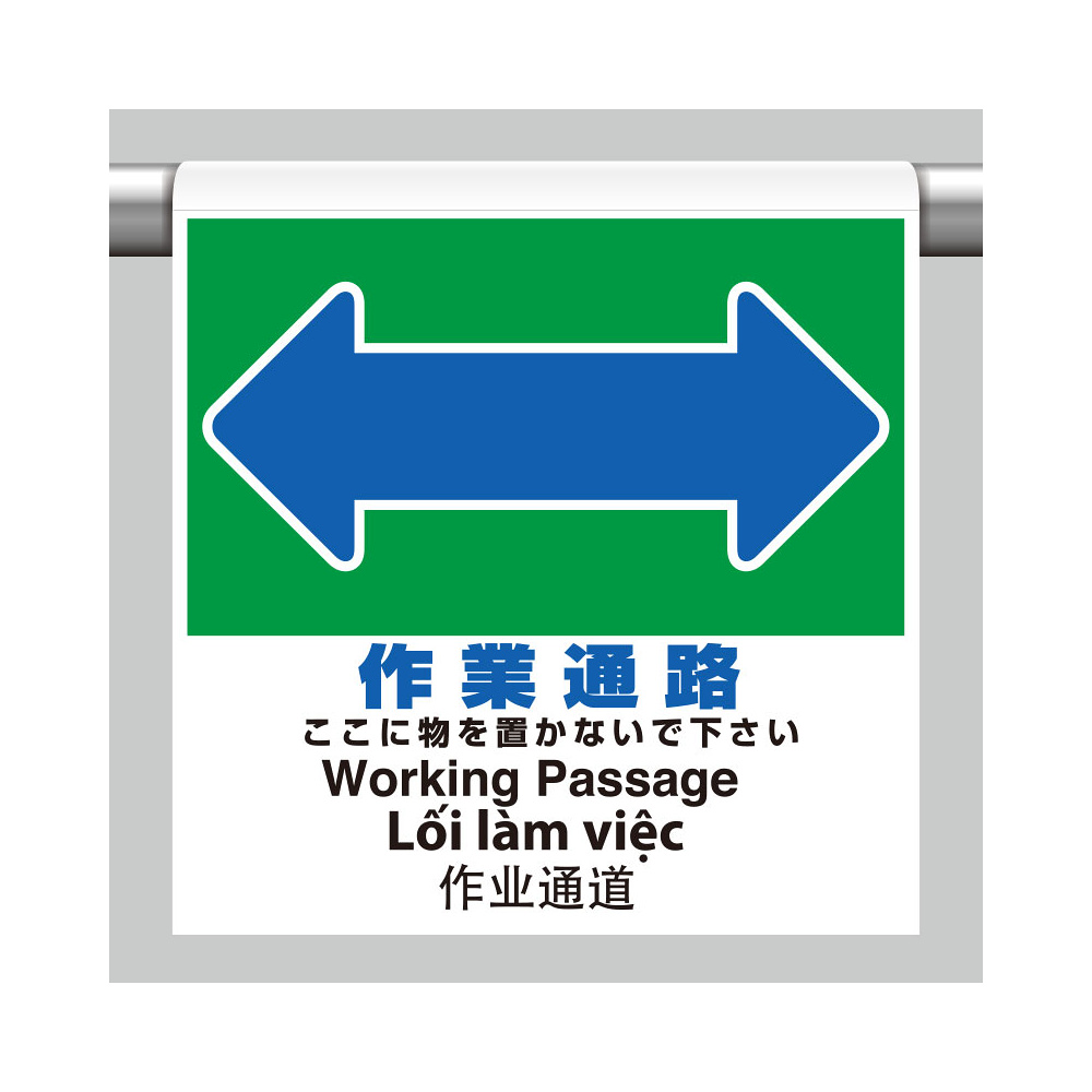 ワンタッチ取付標識(4カ国語・ピクトタイプ) 作業通路 (355-78)