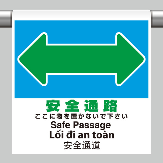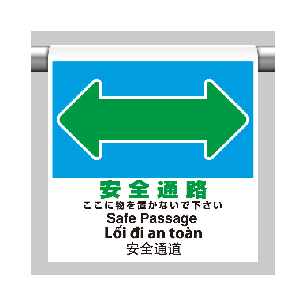 ワンタッチ取付標識(4カ国語・ピクトタイプ) 安全通路 (355-79)