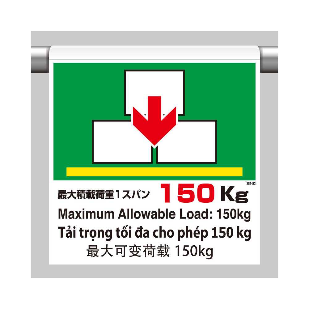 商品説明:ワンタッチ取付標識(4カ国語) 最大積載荷重1スパン150kg最大積載荷重1スパン370kg (355-82)