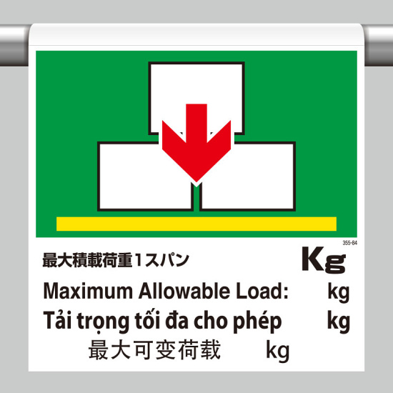 ワンタッチ取付標識(4カ国語) 最大積載荷重1スパン○kg (355-84)